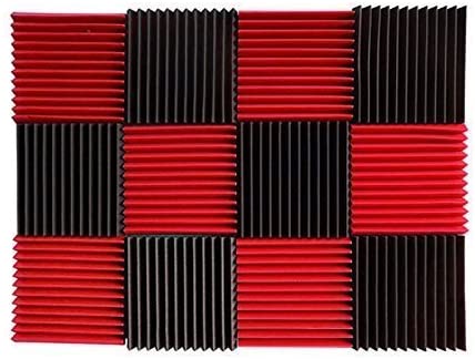 JBER Acoustic Sound Foam Panels, 24 Pack 2 X 12 X 12 Charcoal Soundproofing Treatment Studio RED